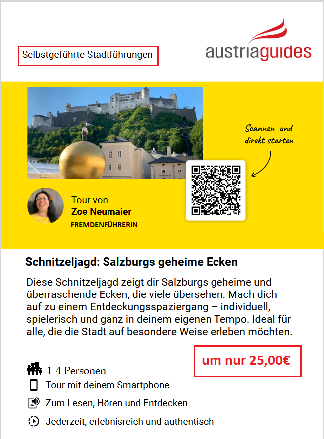 Bitte wählen Sie ein Thema, das Sie interessiert (z. B. Stadtführungen in Salzburg, W.A. Mozart, Konzerte usw.) und klicken Sie auf das Bild.